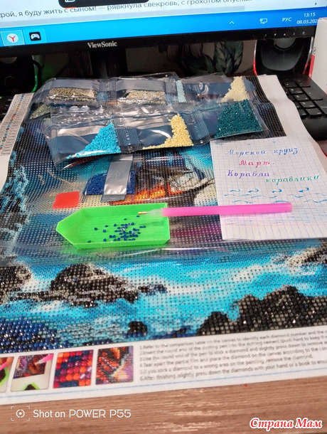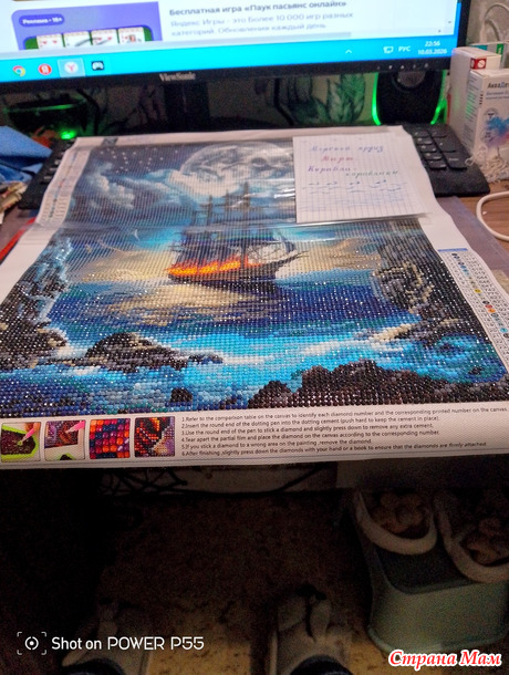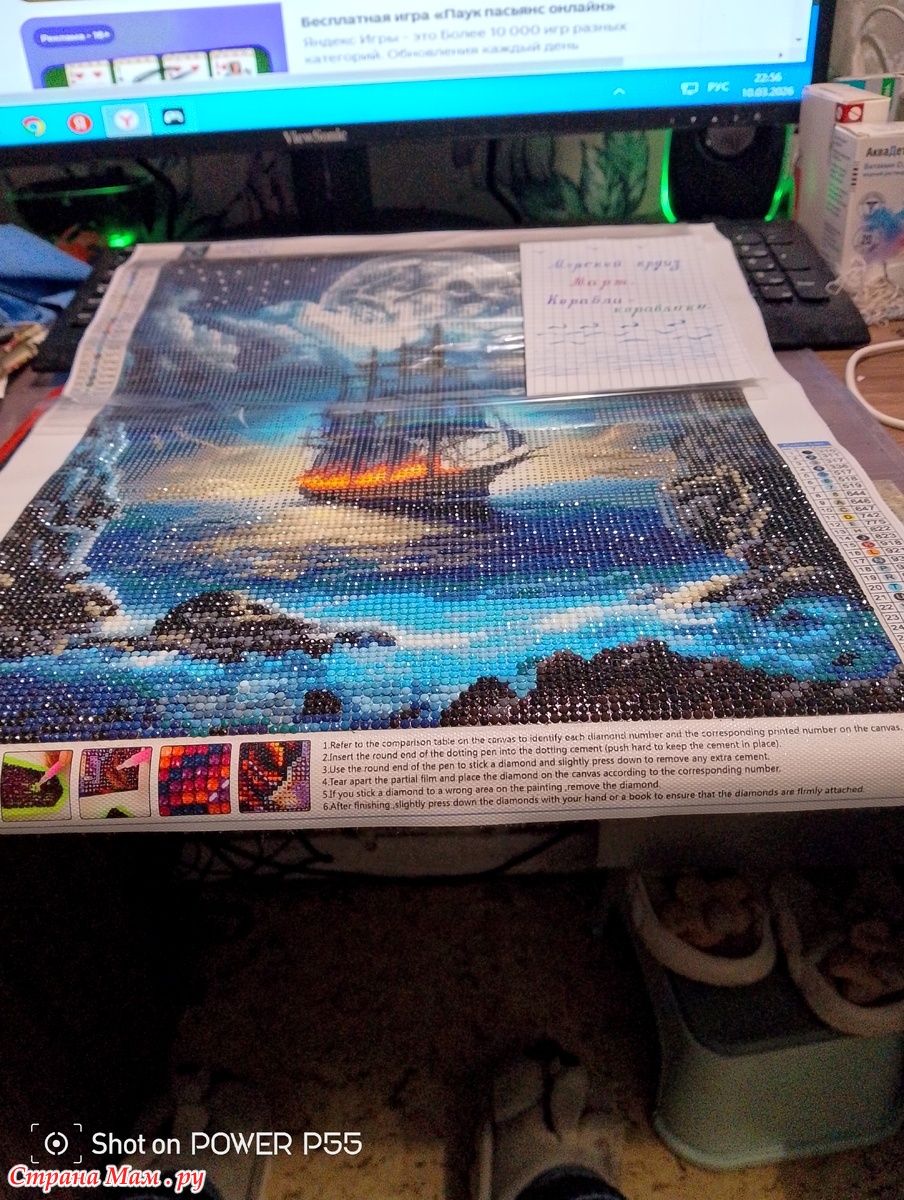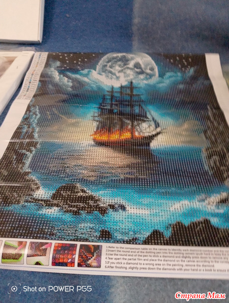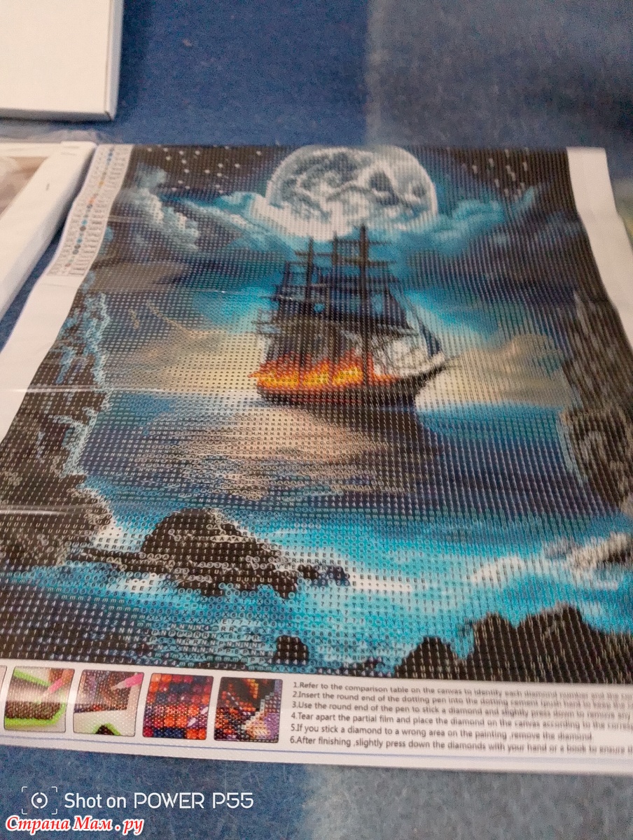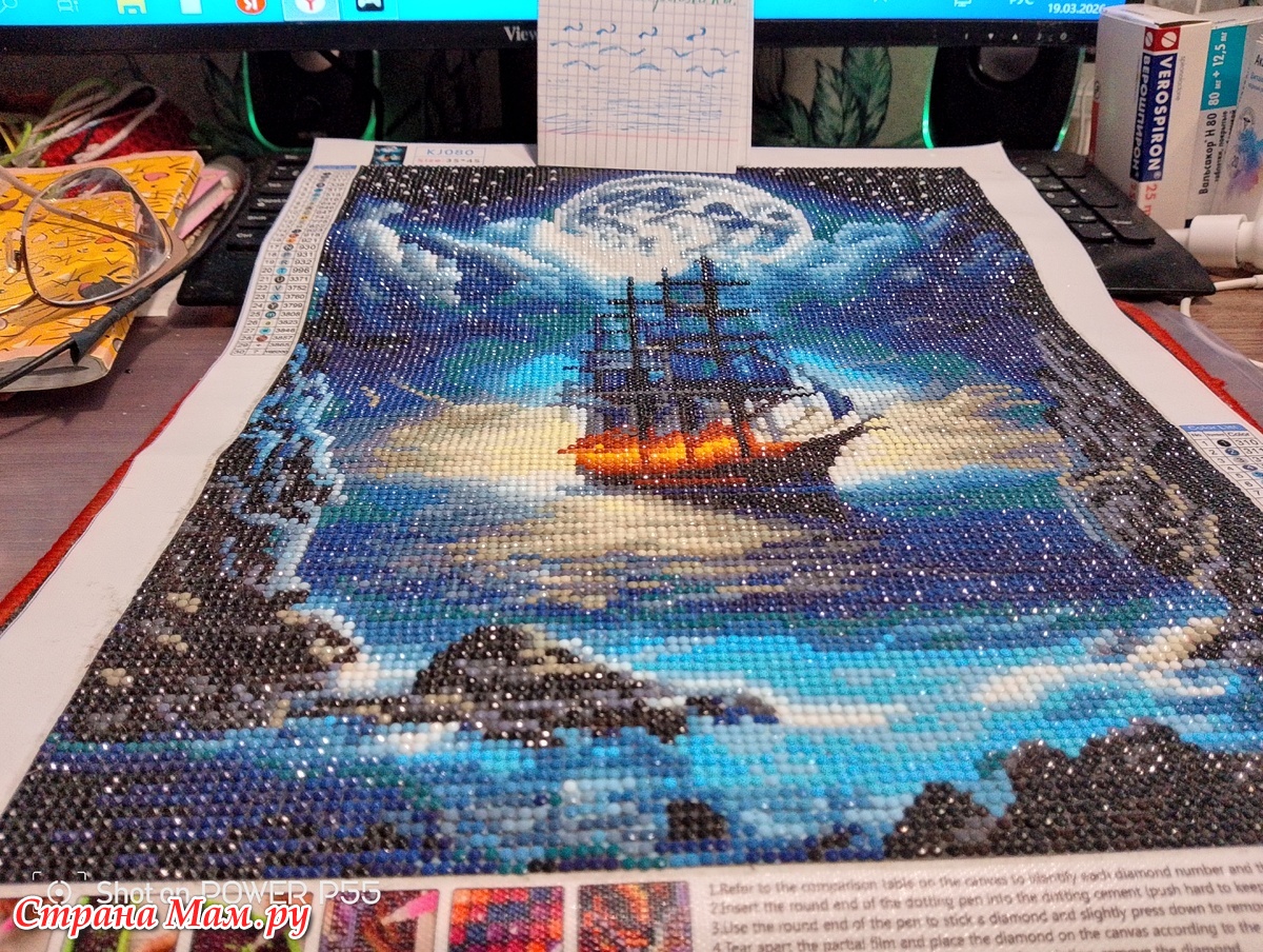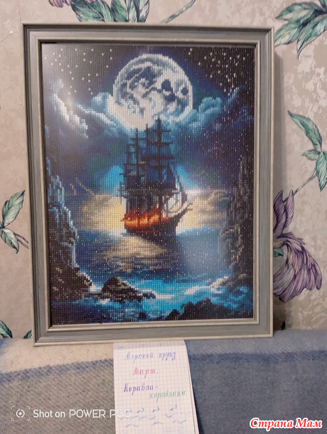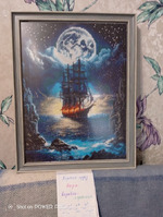 Доброе всем утро! Вот и начался наш веселый морской круиз. Тема этого месяца Корабли- кораблики. Давно хотела алмазной мозаикой занять да и темка подходящая попалась. Стало смотреть что есть интересного в этой тематике и выбор пал на этот корабль. Картина очень интересная и даже как бы мистическая. Ночь корабль и луна. Картина пришла быстро полторы недели я над ней трудилась. А вот с рамкой была проблема не было нужного размера.Картина у меня 35Х45 рамку нашла 31Х41 пришлось выкраивать. Результат меня порадовал . Вот сам процесс.