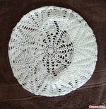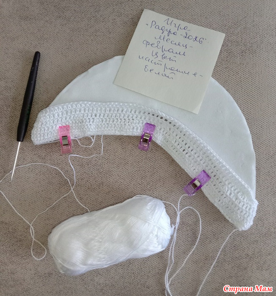 Козырек черный, пришлось обтянуть материалом (фоамиран; почему его использовала - не знаю), потом обвязала крючком. И пришила к готовому берету.