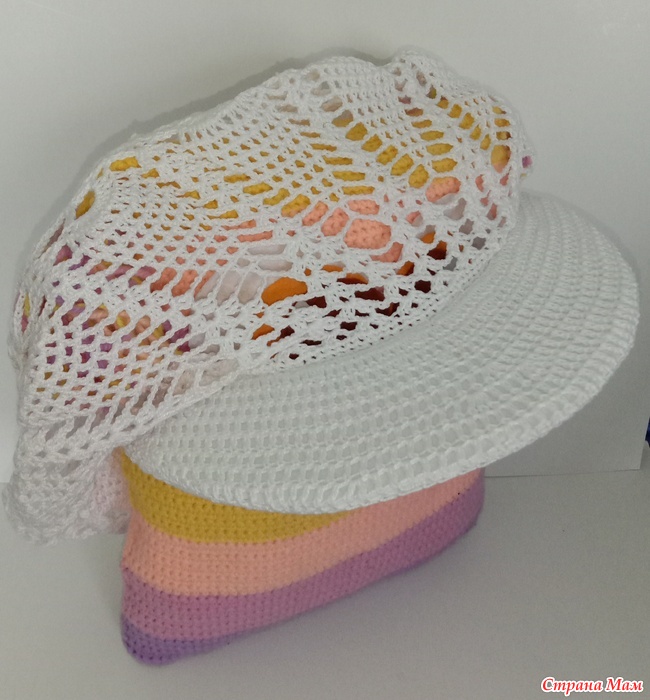 Связала. Нитки "Ализе мисс", крючок - "двоечка". И тут на глаза попался козырек.