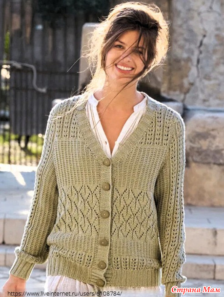Кардиган с плотными и ажурными узорами. Спицы.