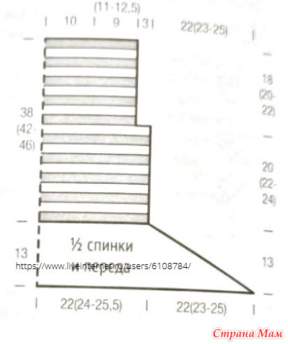 Убавления для пройм: при убавлении нескольких петель в начале ряда обвязать соответствующее число петель соед. ст., в конце ряда просто оставить петли непровязанными.