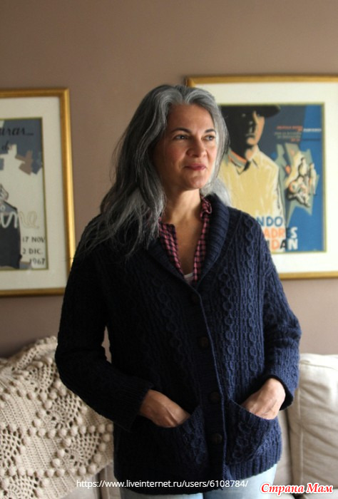 На фото показан кардиган с припуском 12.75 см (по обхвату груди). Большим размерам может быть не так легко, как меньшим, поэтому выбирайте тот припуск, которая вам нравится в одежде подобного плана. Передняя часть кардигана имеет на 2.5–5 см больше припуска, чем спинка.