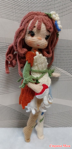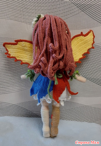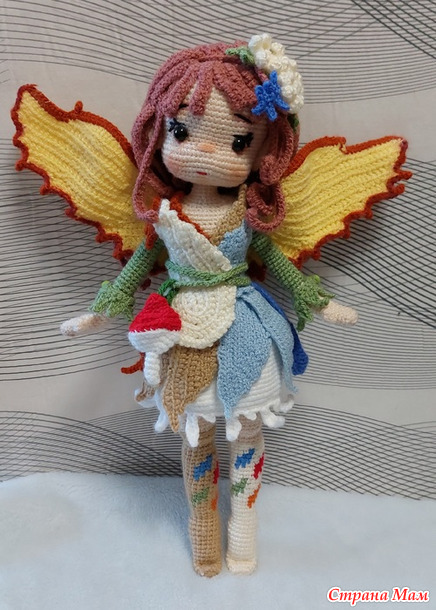 Вдохновлённая красками осени Эйрин,Фея Листьев,отражает нежное преображение листьев от зелёного к жёлтому,оранжевому,красному-воплощая осень в жизнь с помощью вязанных узоров.