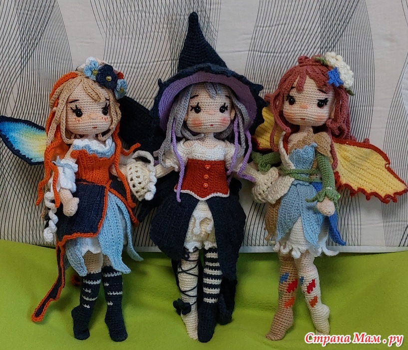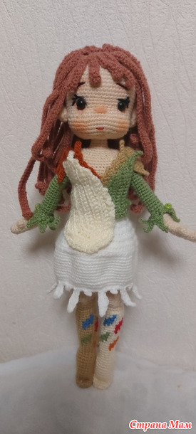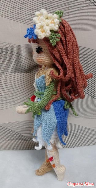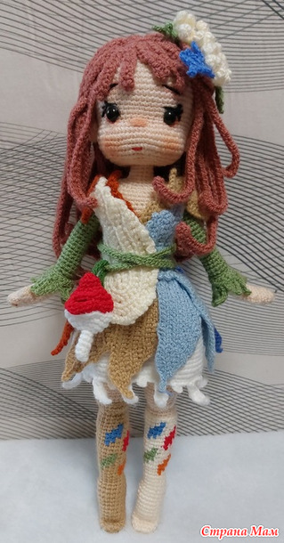 Представляю вашему вниманию третью из пяти феечек -фею Эйрин.. Куколка связана по тому же МК moonlighcrochet89 в переводе от Людмилы Мосиной. Отличается от Лунарии и Миреллы конечно же нарядом. Я поражаюь фантазией авторши МК-ведь у каждой Феечки в наряде своя изюминка,своё отличие. И этим они меня прямо цепляют-хочется поскорее собрать их всех вместе-всю пятёрочку..
