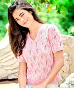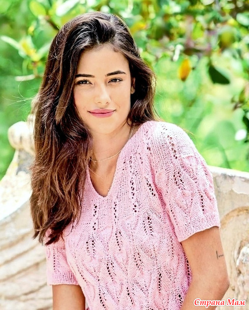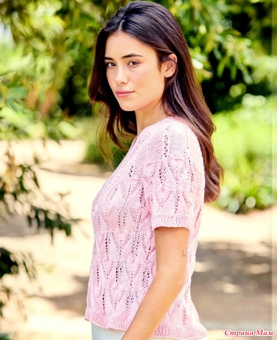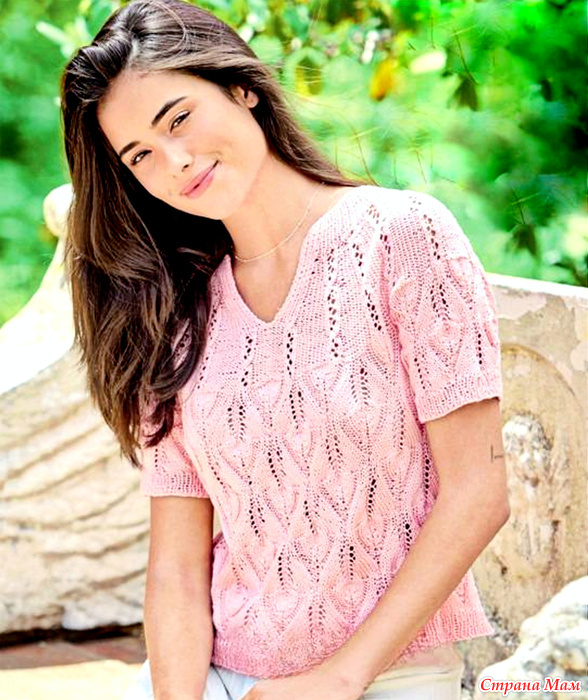 Для вязания нам потребуется 300 (400) г светло- розовой пряжи: 100% хлопок; 120 м/50 г.