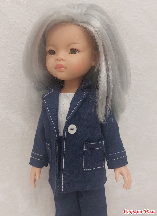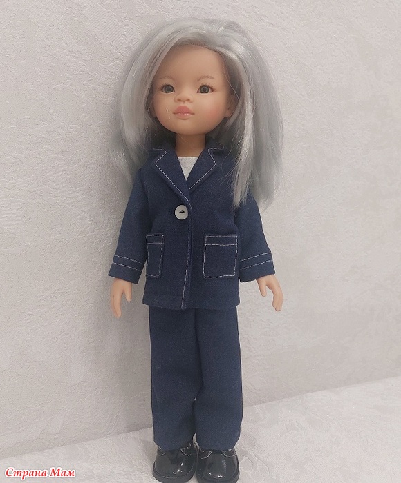 В запасах синего нет, покупать не планировала, но вспомнила, что есть лоскуты от моего эксклюзивного плаща. Для куклы достаточно.