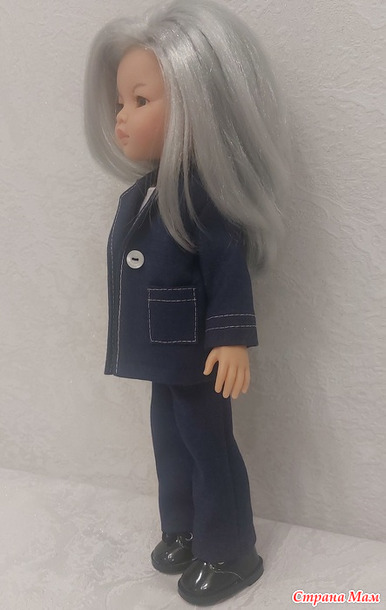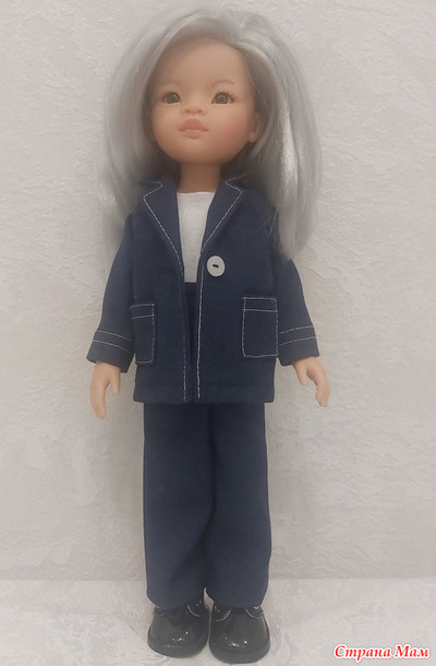 Просто синий костюм - скучновато, поэтому отстрочила белым. Правда, шить и особенно отстрачивать было совсем не скучно