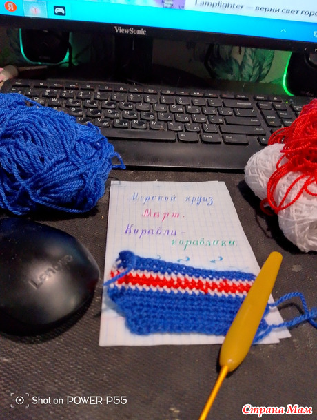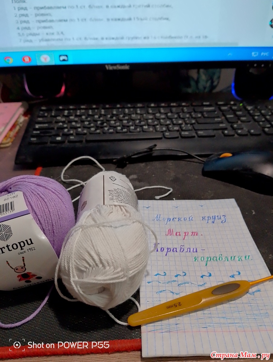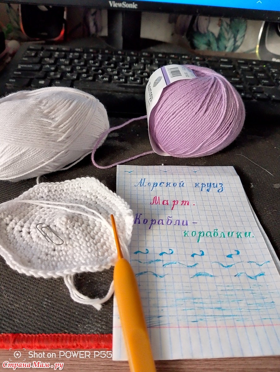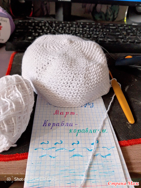В этом месяце у нас замечательная тема по корабликам. Решила сваять шляпку для куклы, давно обновками ее не баловали. Достала ниточки из своих запасов и крючок 2.5 мм. Начала вязать шапочку белыми нитками сбн. поля вязала сиреневыми ниточками. Для аппликации кораблика использовала синии. белые. черные и красные нитки. Вот что в итоге получились. Всем спасибо за просмотр и отзывы. Теперь сам процесс показываю.