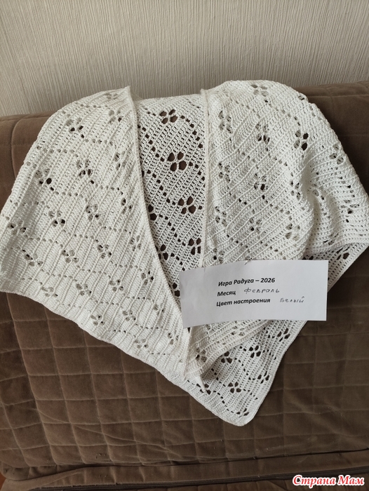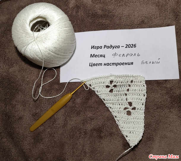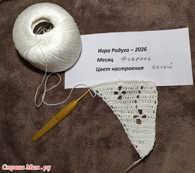 Здравствуйте. Связалась у меня белая мини шалька. Пригодились два моточка пряжи семеновской фабрики "Ирина" хлопок с вискозой. Крючок номер 2,25. Только размер не замерила Схема из интернета Читать полностью