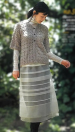 Этот кардиган украшен непрерывным узором из листьев, выполненным столбиками с накидом. Основная часть связана одним цельным полотном, что исключает необходимость в боковых швах, а рукава прямые – действительно удобное решение. Ощутите невероятный комфорт 100% альпаки.