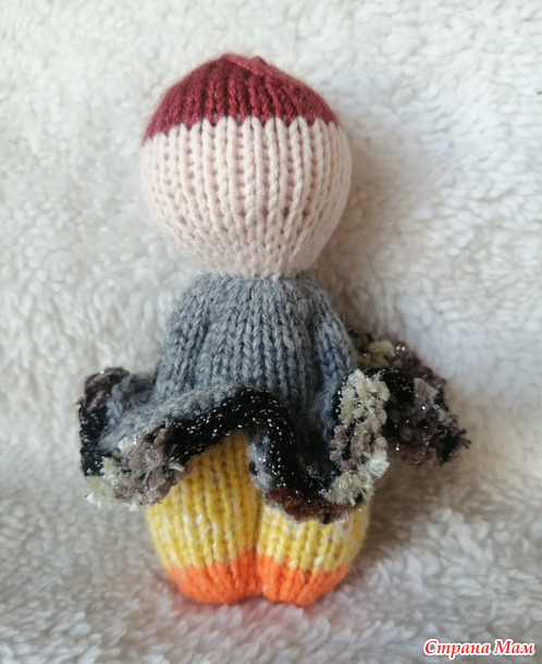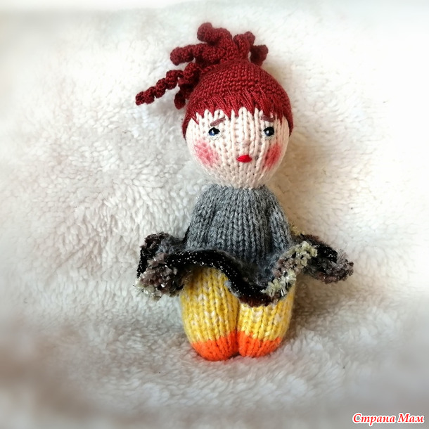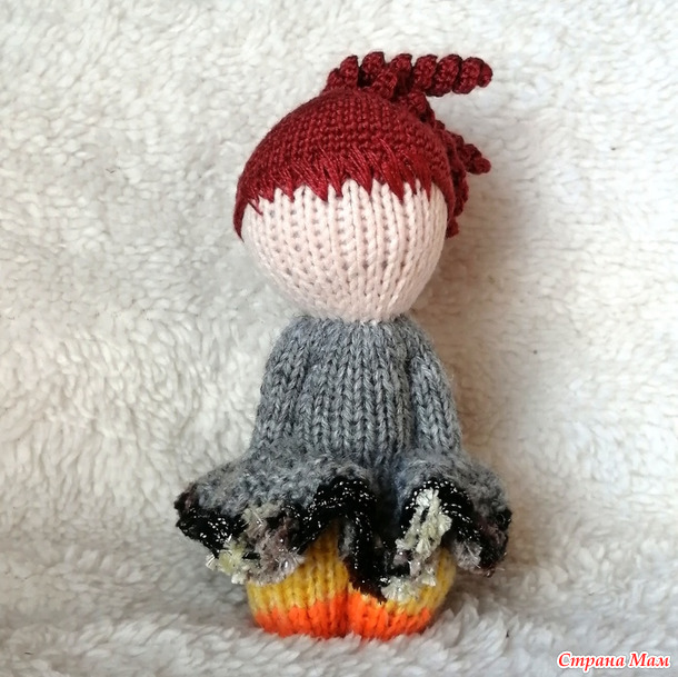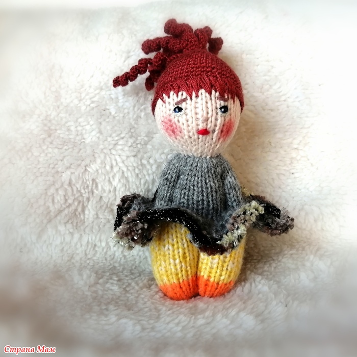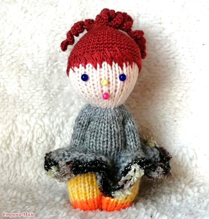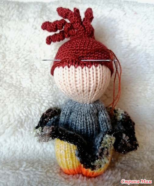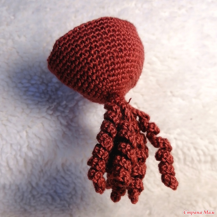 Девочка не первая, поэтому на пацанью стрижку надеваю паричок. На этот раз я начала вязать причёску с локонов. Получилась медуза, но зато ничего пришивать не надо.