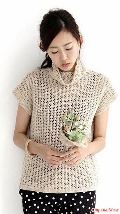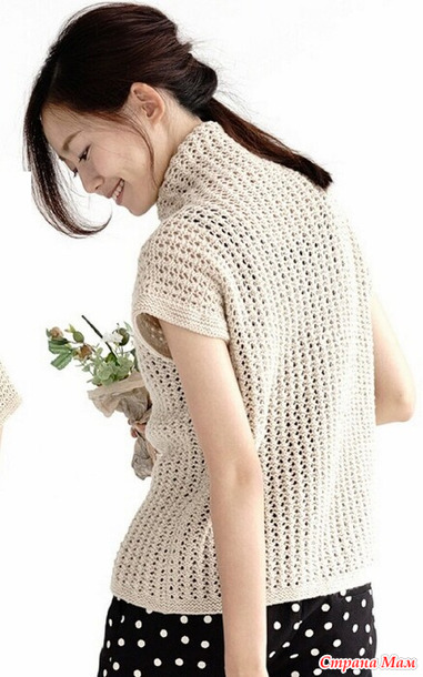 Бежевая ажурная безрукавка.