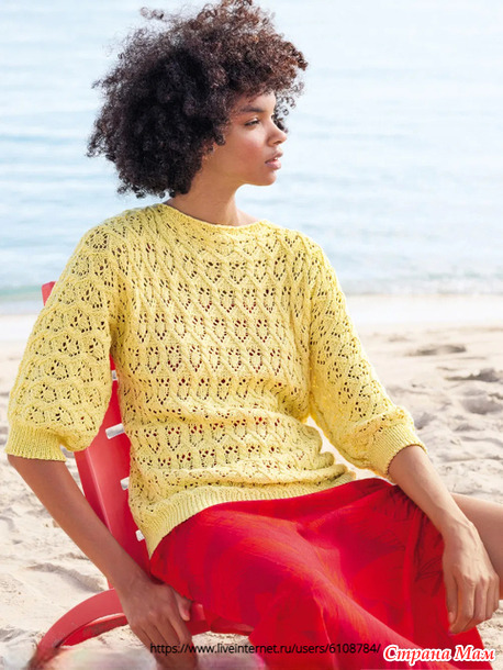 Ажурный джемпер с укороченными рукавами. Спицы.