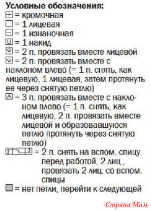 Плотность вязания: 28,5 п. х 35 р. = 10 х 10 см.