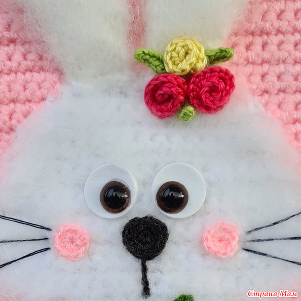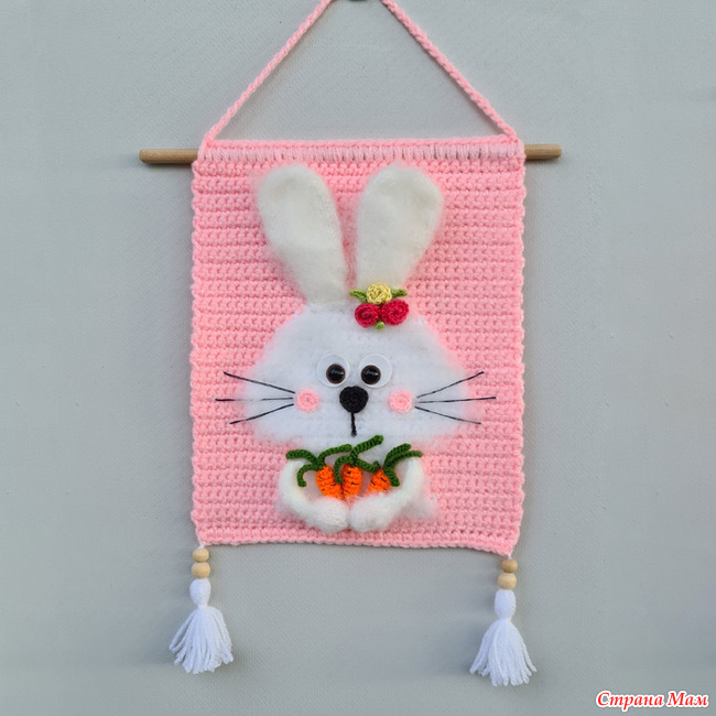 Работа такого плана у меня уже есть, но я подумала, что беленький зайчик на розовом фоне будет выглядеть выигрышней.