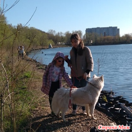 Хорошо бы Айну поймать. Если она не против. Это очень белая собачка. Кажется, хаски.