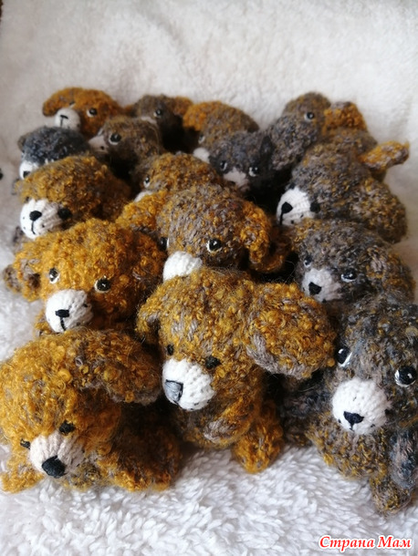У них относительно сложное тело. Поворотные лапки и голова. В основе МК из книги Марии Никулиной. А пряжа букле с каким то смешным % мохера.