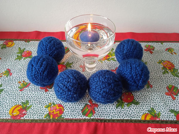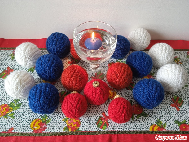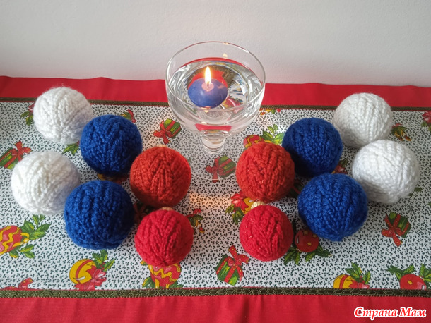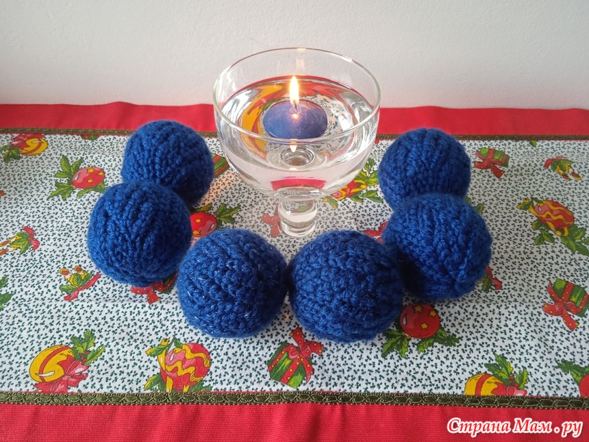 Решила продолжать вязать новогодние шарики поперечным вязанием крючком. В марте будут синие.