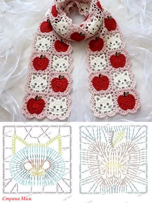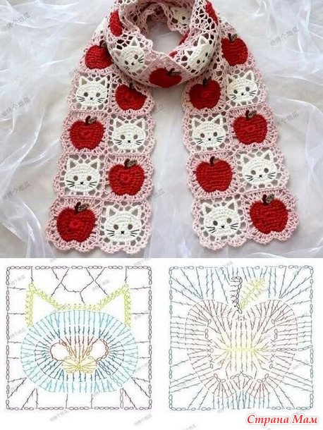 Тэги: шарф, крючком, для детей, мотив, схема, подборка идей