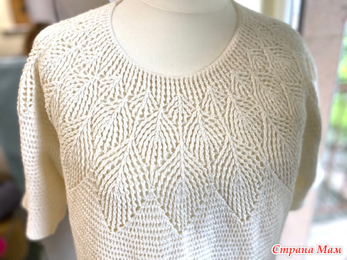 Мастерицы, помогите, пожалуйста, с расчётом этой модели из актуального журнала «вяжем крючком». В журнале эта кофточка на размер М. Мне надо на размер 48/50 наверное L или XL?