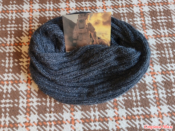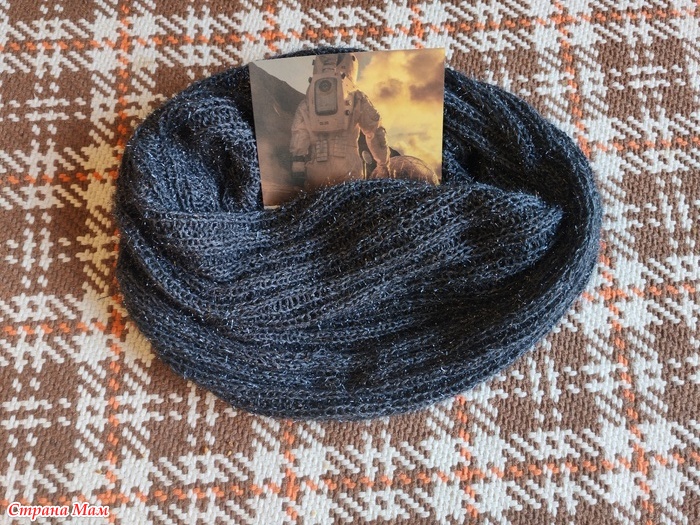 Третий снуд связан из бобинной тонкой пряжи в шесть сложения, трех видов.