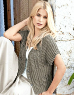 Кардиган цвета хаки на пуговицах с коротким рукавом и узором из «кос» и ажура