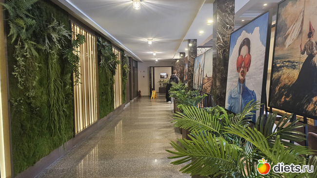 В лобби краники с минеральной водой с их источника