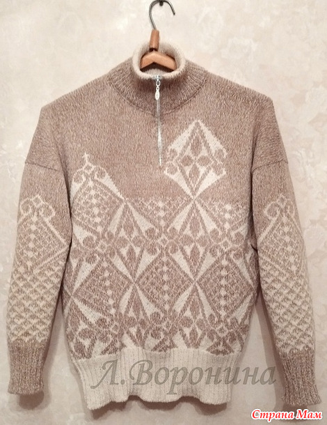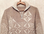 Распустила подростковый джемпер из хлопковой пряжи, добавила белой хлопковой пряжи и связала себе обновку. Жаккард подружил обе ниточки