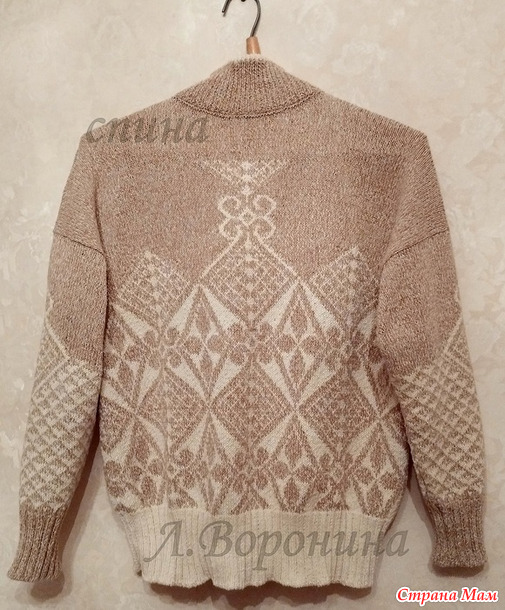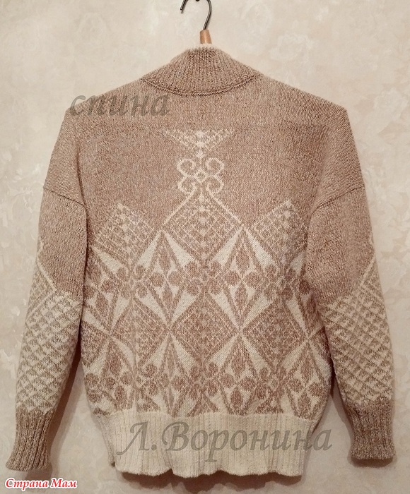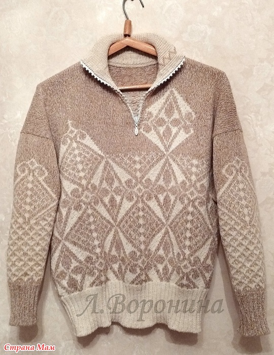Распустила подростковый джемпер из хлопковой пряжи, добавила белой хлопковой пряжи и связала себе обновку. Жаккард подружил обе ниточки