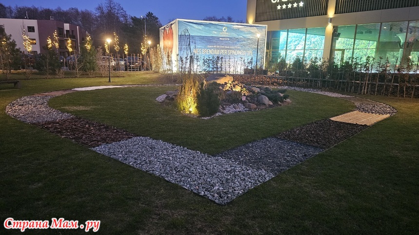 Поздно вечером еще вышли на кружочек со старшим сыном. Мама очень рекомендовала посмотреть фонтан у входа в санаторий