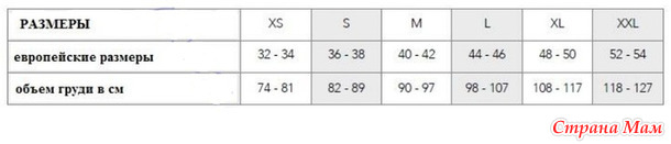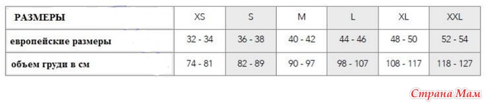 XS (S) M (L) XL (XXL) соответствуют объему груди: 74-81 (82-89) 90-97 (98-107) 108-117 (118-127) см.