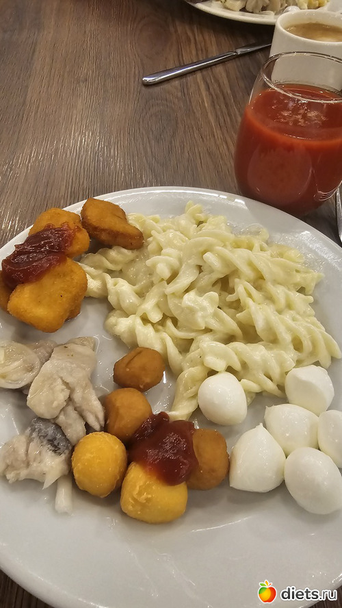 Макароны в сырно-сливочном соусе, селедка, нагетсы, картофельные крокеты, моцарелла