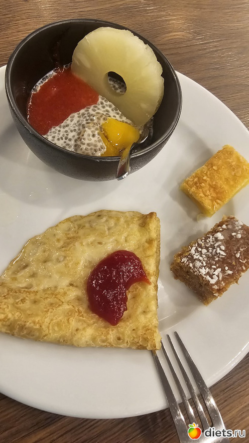 Жареное яйцо, 2 вида омлета, фасоль, горох, тушеные овощи