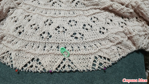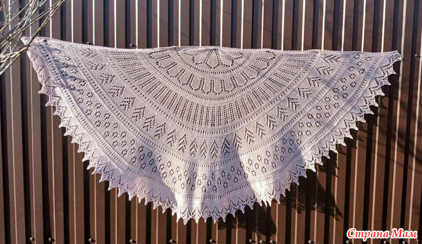 А потом просто боялась подступиться, так как это первый опыт блокировки полукруглой шали, да ещё такого приличного размера.