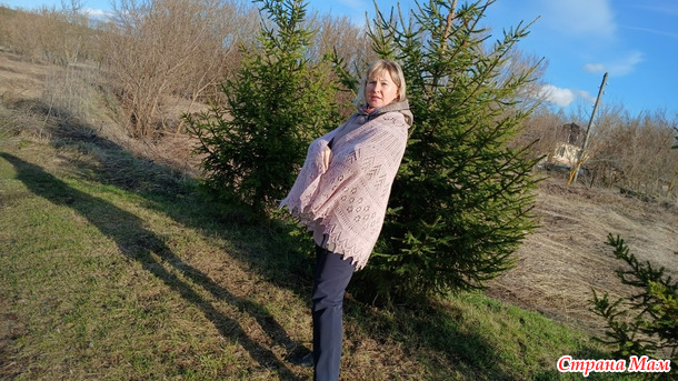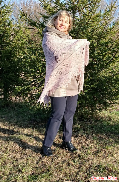 Первый опыт не без ошибок, но на шаль уже появились желающие, поэтому пришлось фото делать очень быстро.