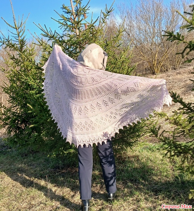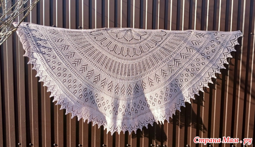 А потом просто боялась подступиться, так как это первый опыт блокировки полукруглой шали, да ещё такого приличного размера.