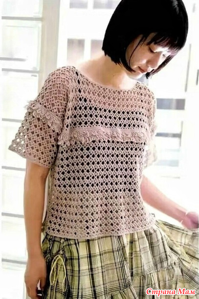 Ажурная блуза с бахромой. Крючок.