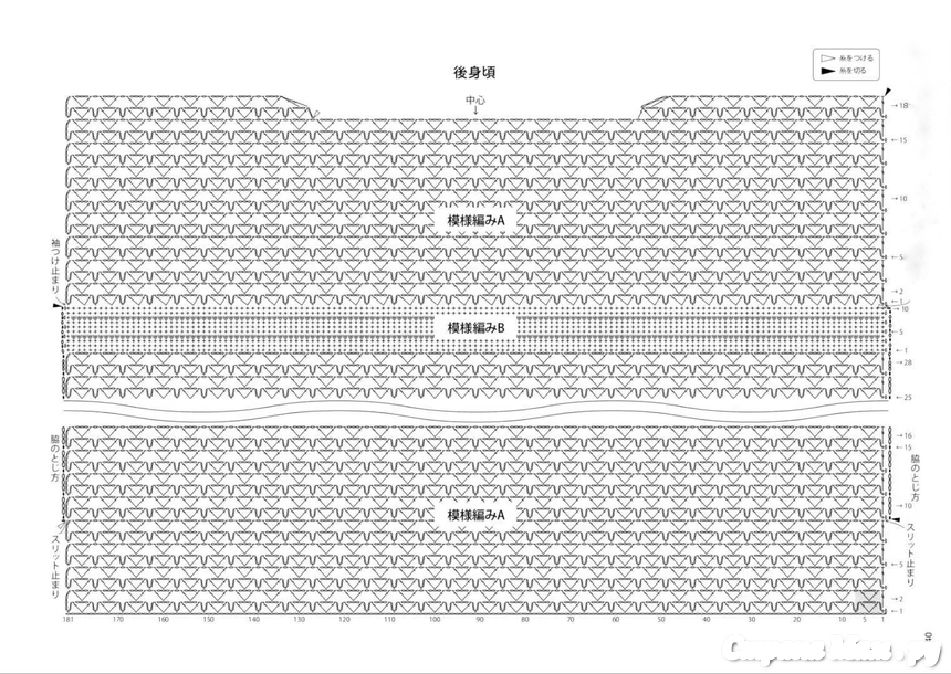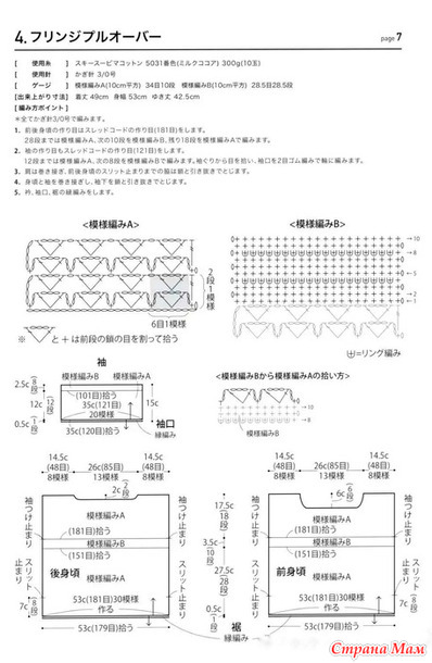 [Плотность вязания] Узор A (квадрат 10 см): 34 петли, 10 рядов. Узор B (квадрат 10 см): 28,5 петель, 28,5 рядов.
