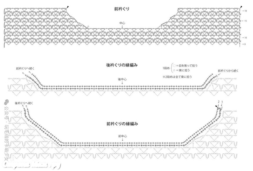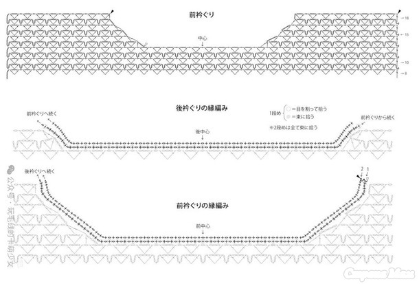 1. Наберите петли для передней и задней частей лифа, используя шнур (181 петля).