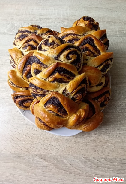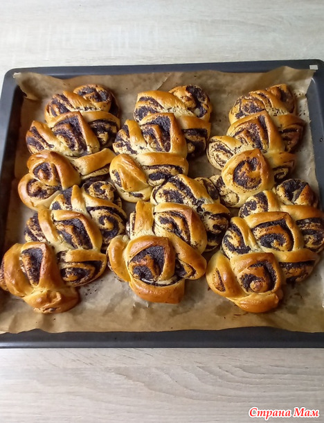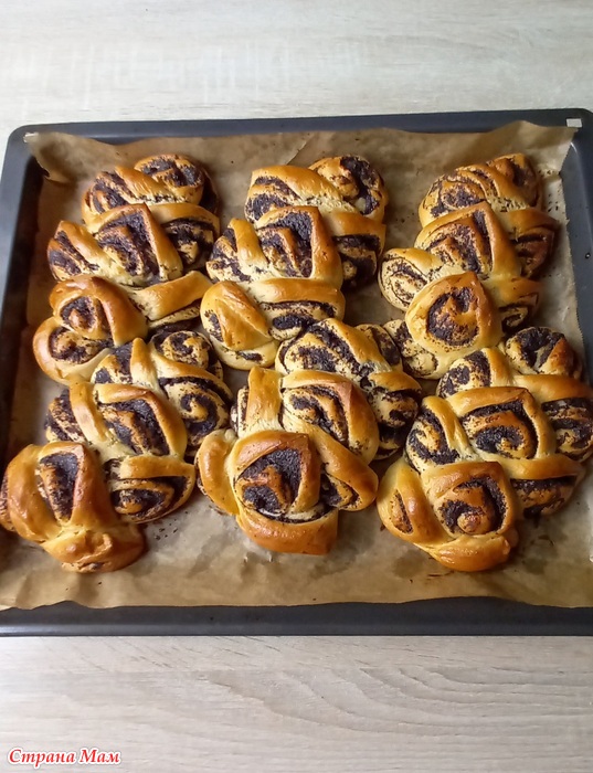 А вот булочки с маком уже со сладкого дрожжевого теста на молоке, с добавлением сливочного масла.