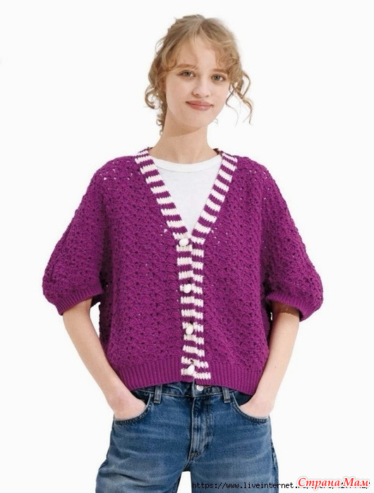 Хлопковый кардиган планка которого связана спицами.