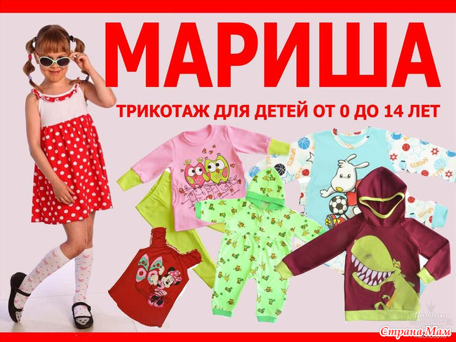 Мариша-детский трикотаж с 0 до 14 лет, а также взрослый для женщин и мужчин.