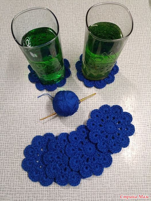 Радуга 2026 в марте порадовала нас синим цветом. Решила связать подставки под бокалы/кружки/чашки. В прошлой Радуге вязала похожие, их дочки разобрали. Следующая партия активно используется мной дома и на работе под чашку. Многие коллеги любуются, интересуются, спрашивают, вот и решила связать в подарок.
