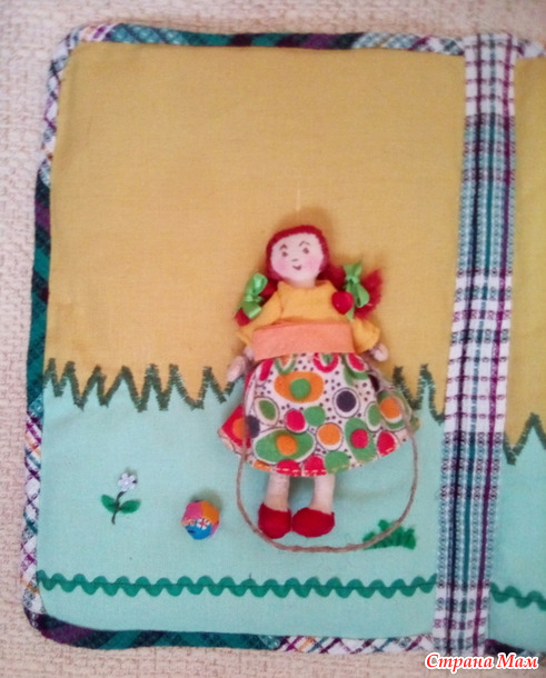Когда-то давно, лет 10 назад, в рамках Московской программы "Бабушкины университеты" я сшила тактильную книжку для плохо-видящих детей .Взяла тему "Девочка растет." Получилось вот так.
