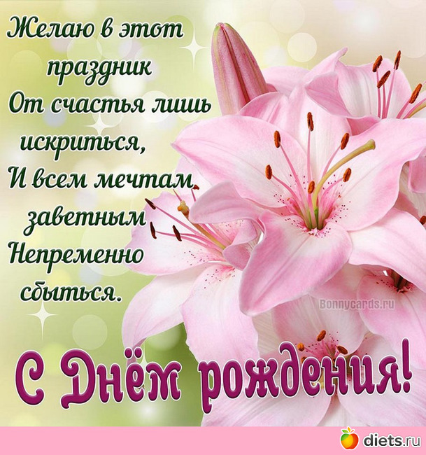Я поздравляю тебе с новым годом твоей жизни, который принесет тебе новые радости и свершения! Желаю тебе здоровья, хорошего весеннего настроения, радостных солнечных теплых дней и всего самого лучшего , ты это заслужила!!!