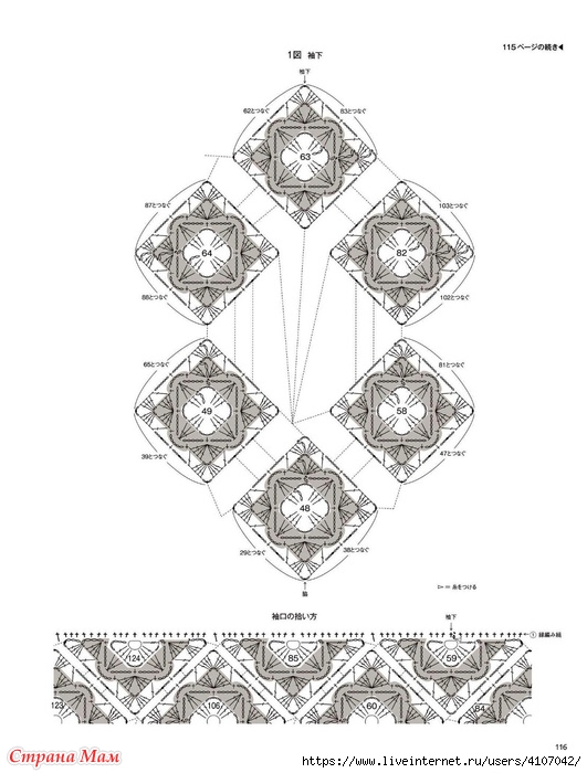 Цифры внутри мотивов указывают порядок их соединения.