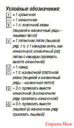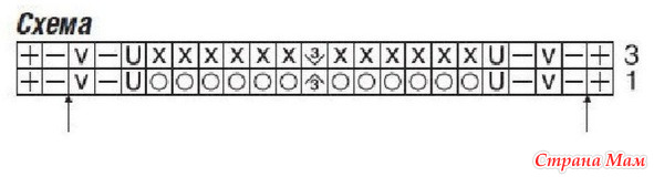 Плотность вязания: узор 2 - 20 п. Х 26 p. = 10 x 10 CM.