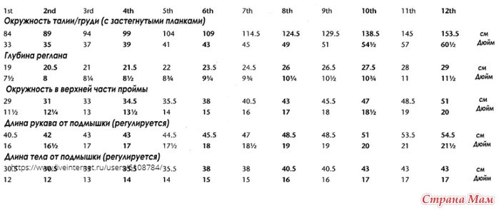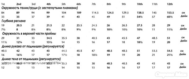 Примечание: количество поднятых петель для некоторых размеров намеренно меньше, чем набранное число петель подмышки.