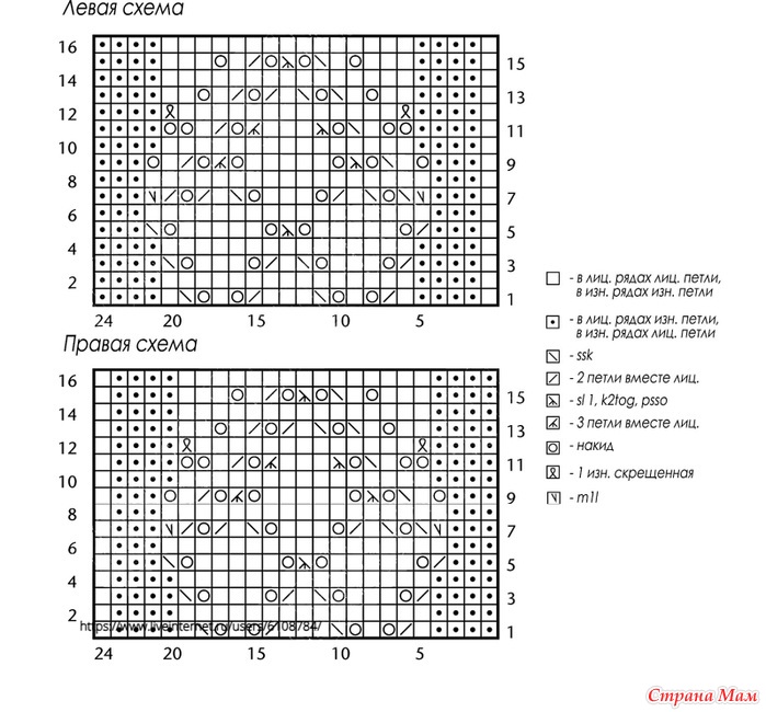 • Схему читать справа налево в лицевых рядах и слева направо в изнаночных рядах.