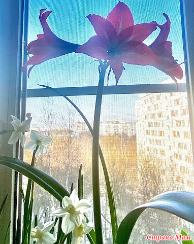 Вот так мой сад-огород выглядел на подоконнике.)) Ещё была примула. Красиво цвела, но сейчас, увы, отдыхает. Стоит на подоконнике возле нарциссов.Там, в середине - куст зелёный - перец Ромеро. В прошлом году он и не подумал цвети, зато вымахал чуть не до потолка! По крайней мере, до "потолка" оконного. Цвёл, как не в себя, но ни одной завязи не было, несмотря на то, что я цветочки сама тыкала. А в этот раз и не тыкала, и ростиком не удался, а вот, надо же, отцвёл и дал перчик. Растёт. И позавчера нашла ещё один после цветения.